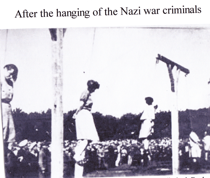 The other two female prisoners are hanged after the return of the squad that works the day shift. SS- Obersturmfuhrer Hossler reads out the sentence, and screamed that all traitors will be destroyed in this manner.sic]