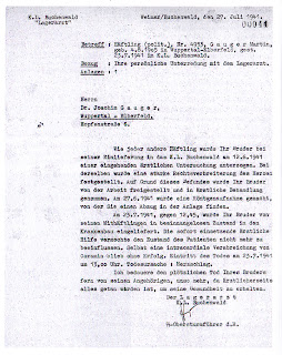 | Letter of Camp Doctor Waldemar Hoven to Dr. Joachim Gauger dated 27.7.1941 regarding the death of his brother. The fictitious case histories Dr.Hoven ordered a male nurse to write. |
